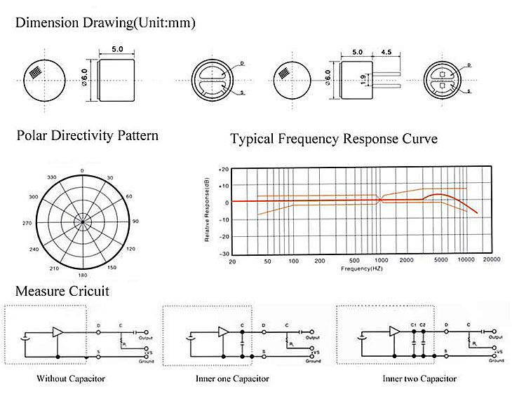 | Directivity | Omni-directinal | Current Consumption: | Max.0.5.mA |