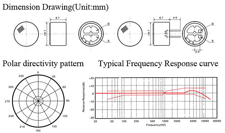 | Directivity | Omni-directional | Current Consumption: | Max.0.5.mA |